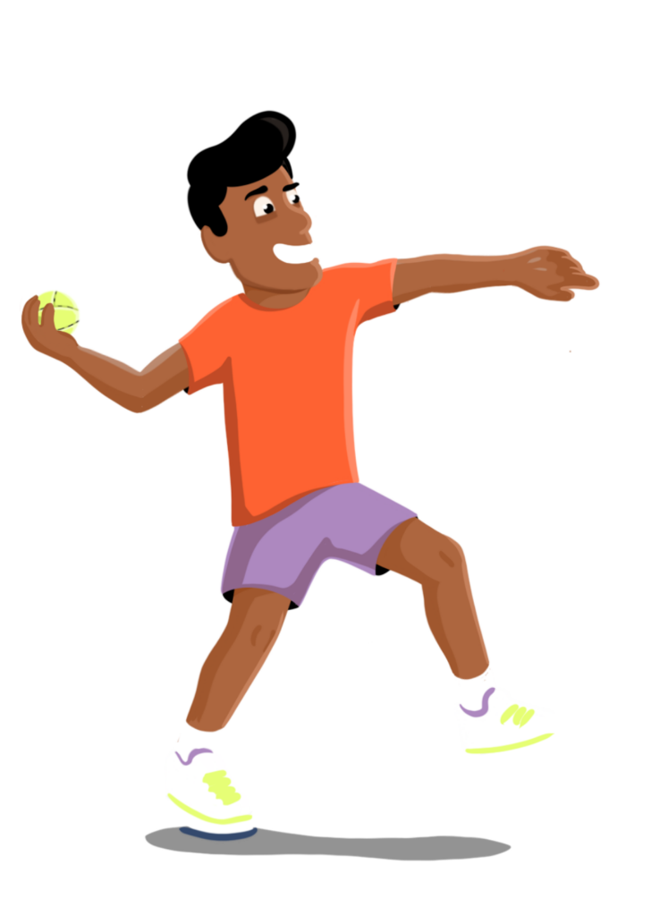 • Seitlich zur Wurfrichtung stehen (linke Hand zeigt dahin, wohin geworfen werden soll)