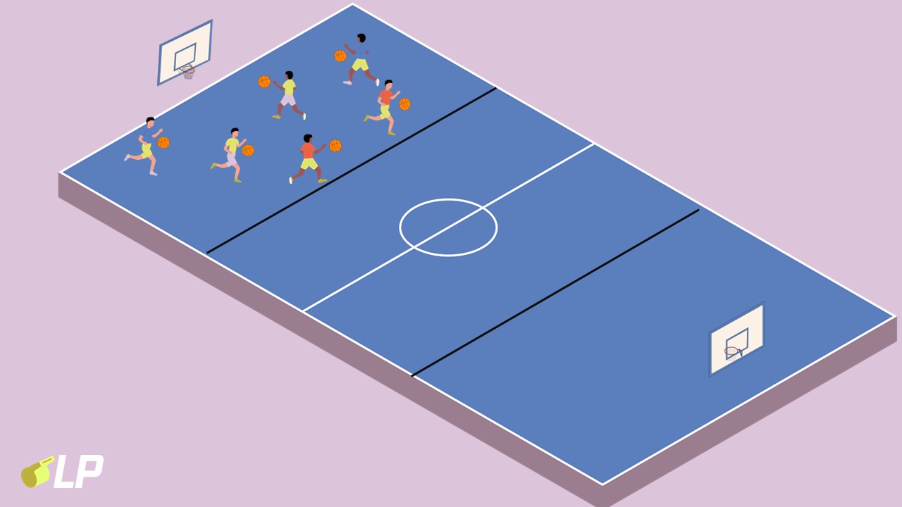 • Das Basketballfeld wird in 3 Teile aufgeteilt