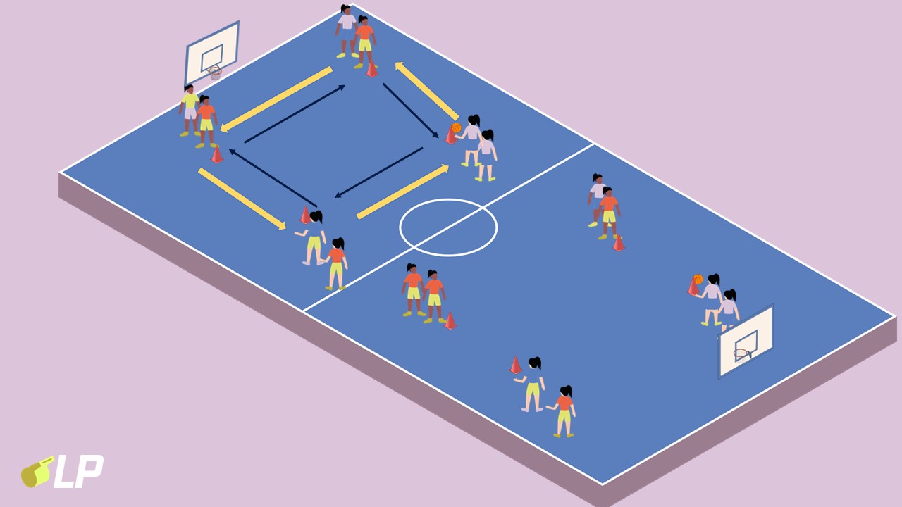 - Nach einem Pass bewegt sich der Passgeber gegen den Uhrzeigersinn zur nächsten Gruppe und stellt sich hinten an.