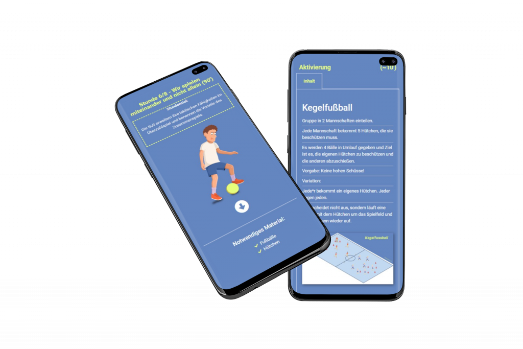 Die Fußball Unterrichtsreihe umfasst insgesamt acht Unterrichtseinheiten und wird mit einem Technikparcours sowie einer Turnierform abgeschlossen.