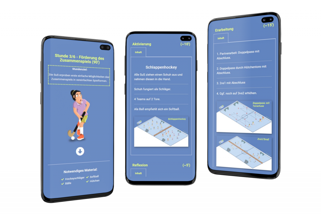 Die Floorball Unterrichtsreihe umfasst insgesamt sechs Unterrichtseinheiten. Die Erprobung der Unterrichtsreihe hat gezeigt, dass beim Passen und Stoppen zunächst eine technische Grundlage geschaffen werden muss, bevor es in erste Spielformen geht.