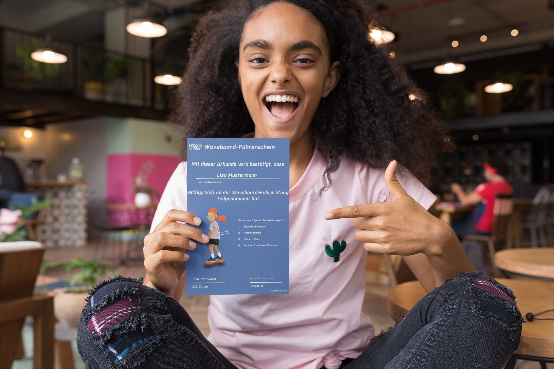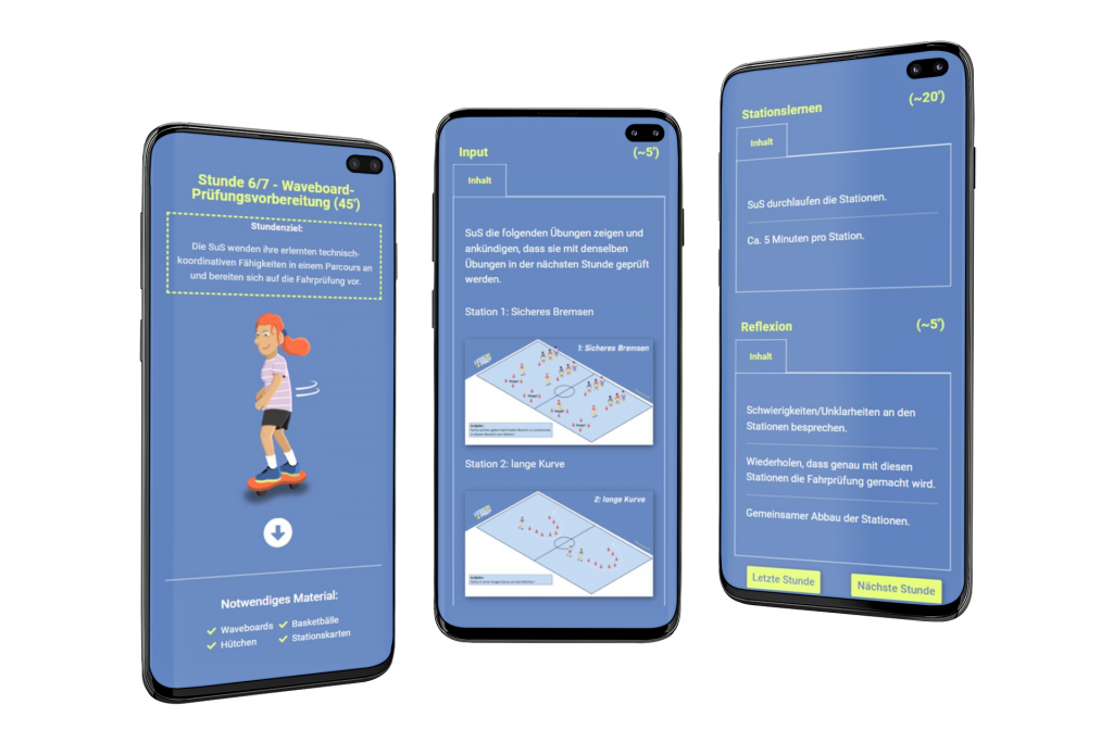 Die Unterrichtsreihe bereitet die Lernenden auf die abschließende Waveboard-Fahrprüfung vor. Geprüft wird in den Kategorien: „Sicheres Bremsen“, „Kurven fahren“, „Slalom fahren“ und „Korbwurf mit dem Waveboard“.
